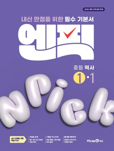 엔픽 중등 역사 1-1은 7종 역사 교과서를 세밀하게 분석해 만든 기본 학습서로, 개념 이해와 시험 준비를 함께 할 수 있도록 구성된 교재입니다. 개념 학습 영역은 주제별로 적절한 분량으로 정리되어 있어 내용을 부담 없이 익힐 수 있으며, 배운 내용을 문제 풀이에 자연스럽게 연결할 수 있도록 설계되었습니다. 시험 대비 영역은 실제 학교 시험과 비슷한 형식과 수준의 문제를 대단원별로 제공해, 시험 전 실력을 점검하는 데 유용합니다.